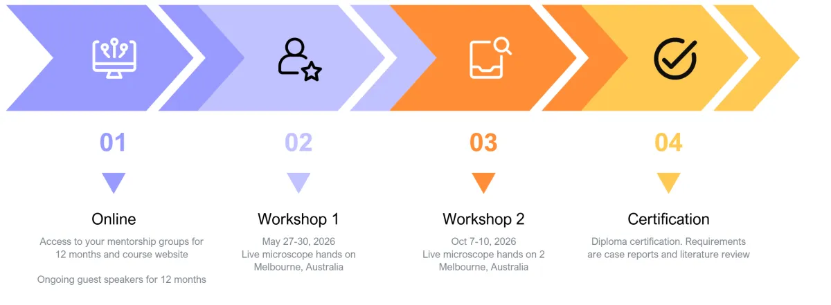 The program was designed as package so we can be accountable to your growth and development. On average our Diploma attendees improve their scope of practice in advanced endodontics and income by 25-35% during the year of the program, and get multiples on their return. This way we can provide the greatest impact and value to dentists hence we do not offer individual modules except on an ad hoc basis.